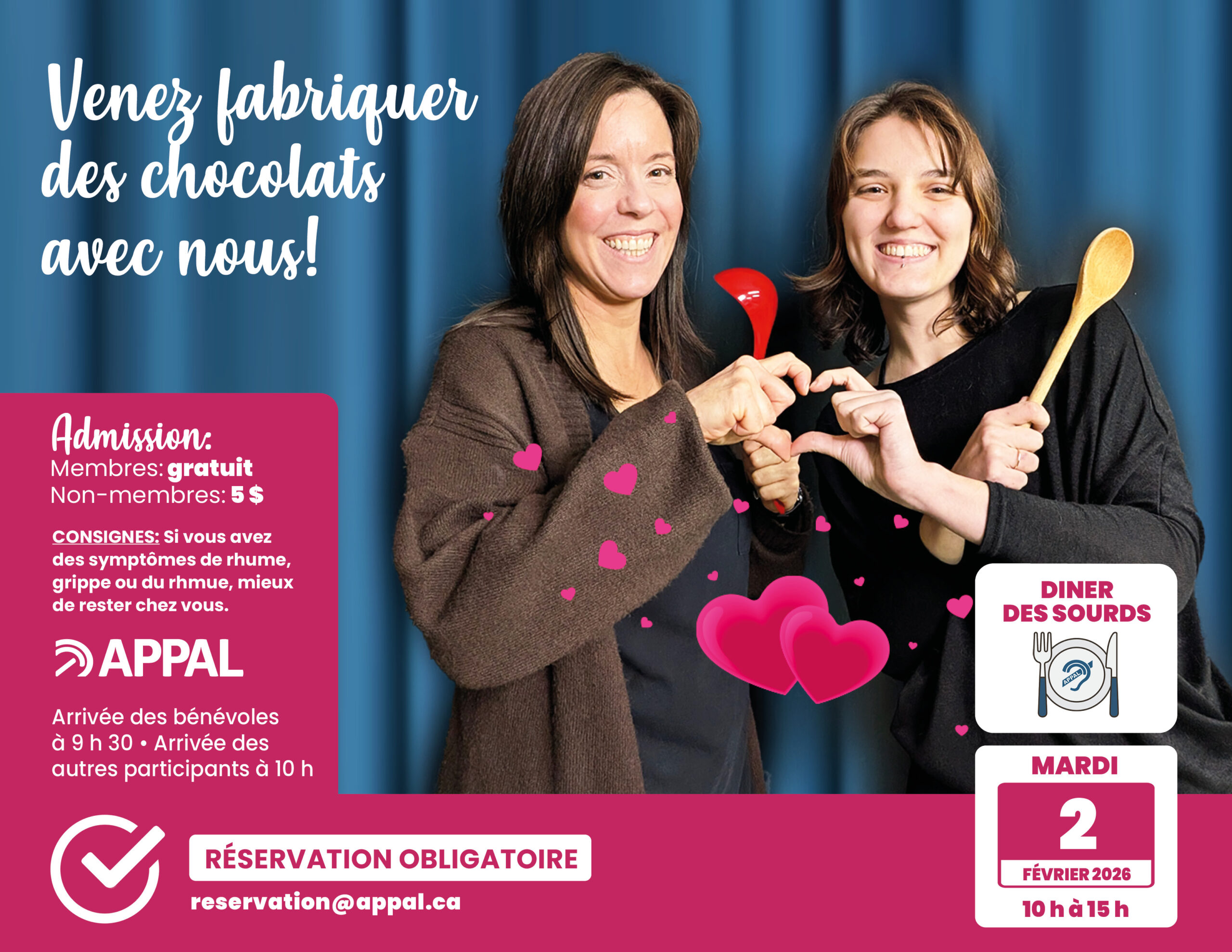 Venez fabriquer des chocolats avec nous! Admission: Membres: gratuit Non-membres: 5 $